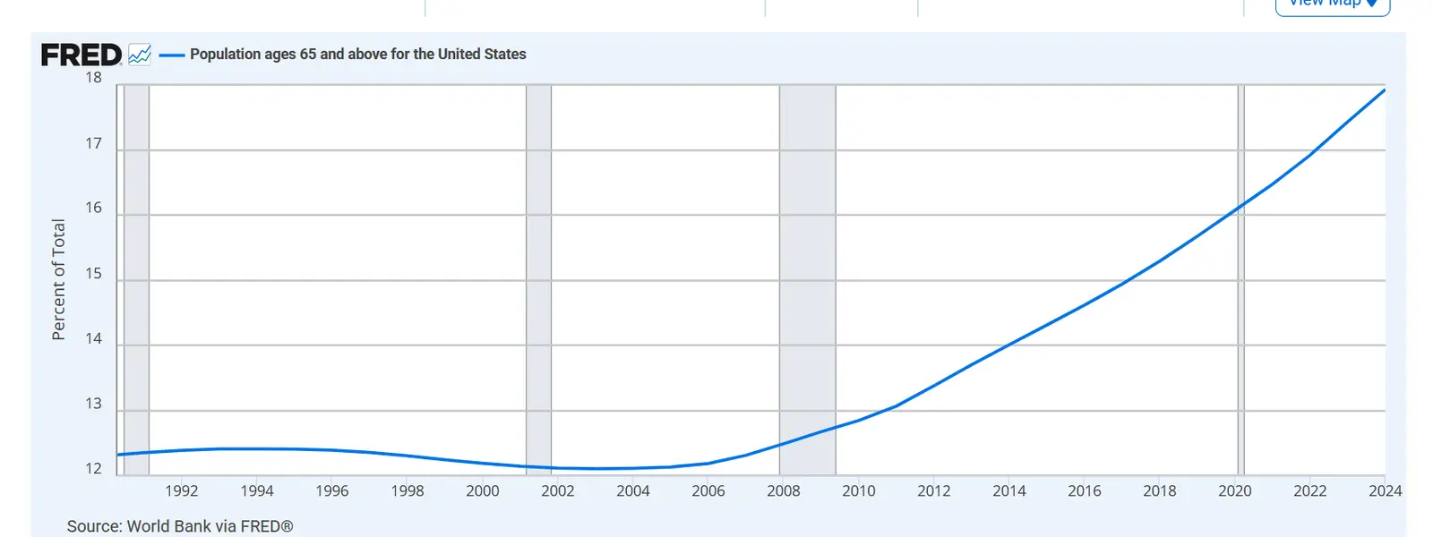 Clinton, Obama & Biden had no problem increasing employment of the 15-64 yrs working age population. Republicans ALWAYS Destroy Jobs & Economy & Explode Debt. Bush & Trump hold the record for job loss.Ummm, your chart shows 3% less employed, but you overlook that in the same time period, there are 6% more of the population above age 65....
