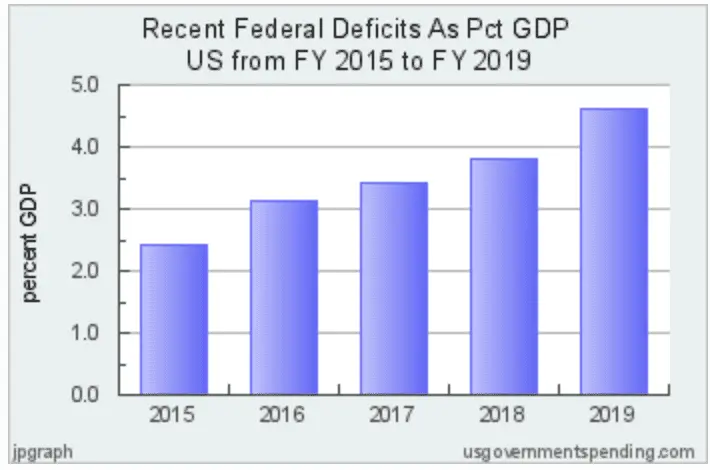 Trump is just borrowing at increasing rates to fund a tax cut which a large part went to corporates and instead of creating higher paid job they just bought back stack, thus increasing stock prices and giving this picture... GDP hasn't increased that much and even if it did is it above the 5.5% of GDP which borrowing is right now..