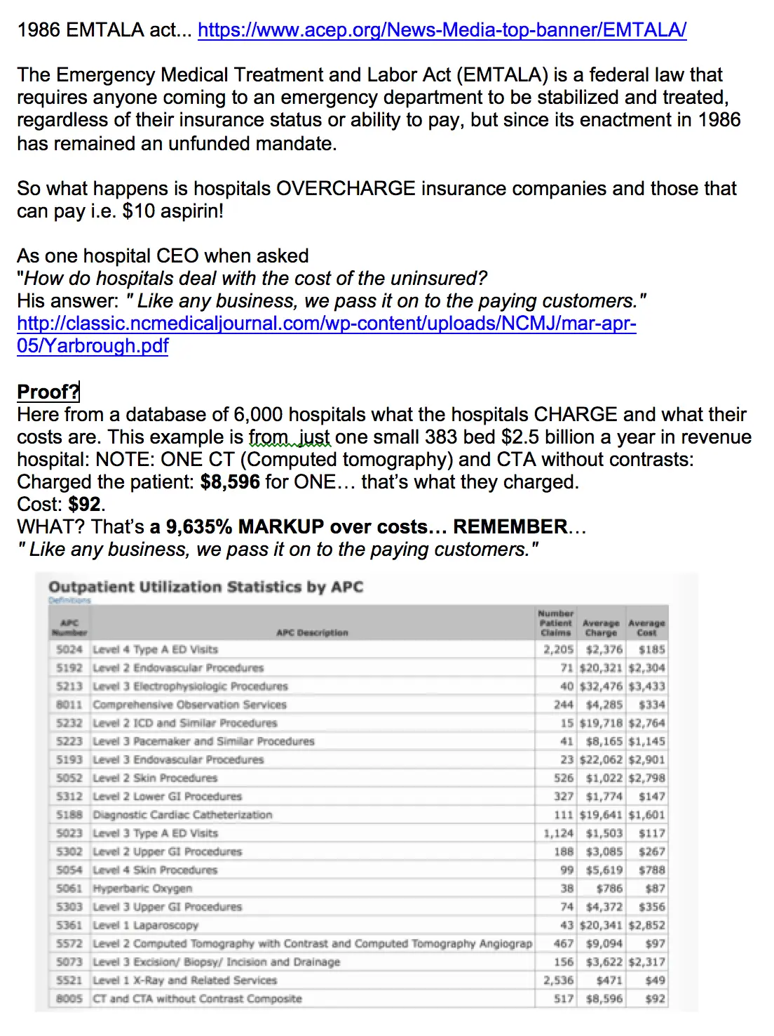 Thanks to the 1986 GOP lead EMTALA law... Look up EMTALA and see the MAJOR MAJOR cause of rising insurance premiums!