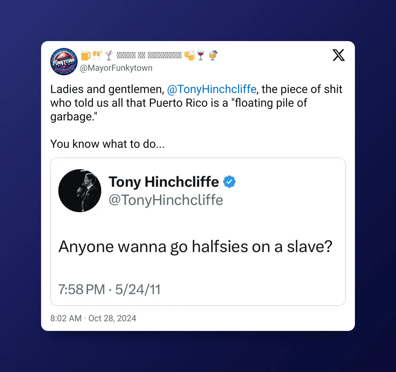 S struth Diamond Member Joined Feb 22, 2021 Messages 85,456 Reaction score 54,945 Points 2,488 Oct 29, 2024 #61 rampart said: tony heathcloffe proves what we always say about conservative "humor" View attachment 1032663 Click to expand... Trumps favorite is Johnny Carson This guy is Tom Brady’s