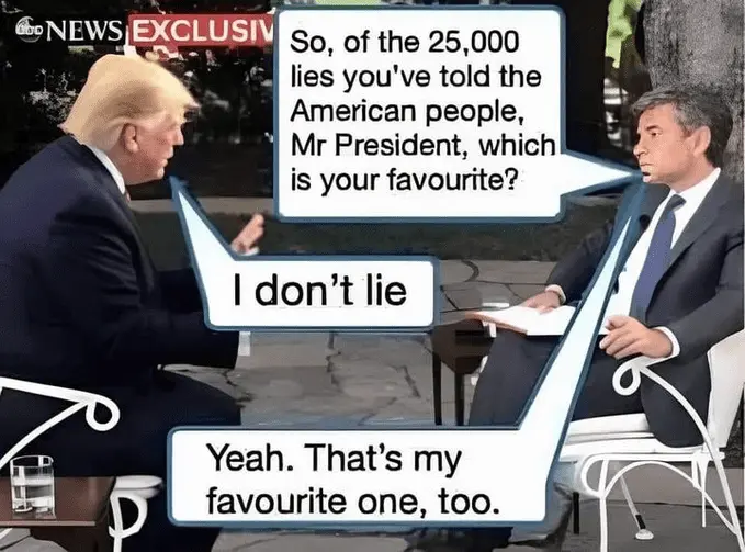 Of all your many lies, that's our favorite.In all of the thousands of claims about Trump's lies, I have never seen an example of an actual lie.