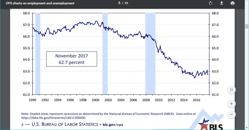 And now Trumps labor force participation s lower than when he took office. Dispute the temporary uptick, the trend is into the toilet.