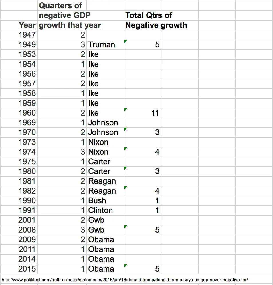 Except for the 8 times he had quarterly GDP growth of 3% or greater, including one over 5%. Tramp has never had even one quarter even near 5%.