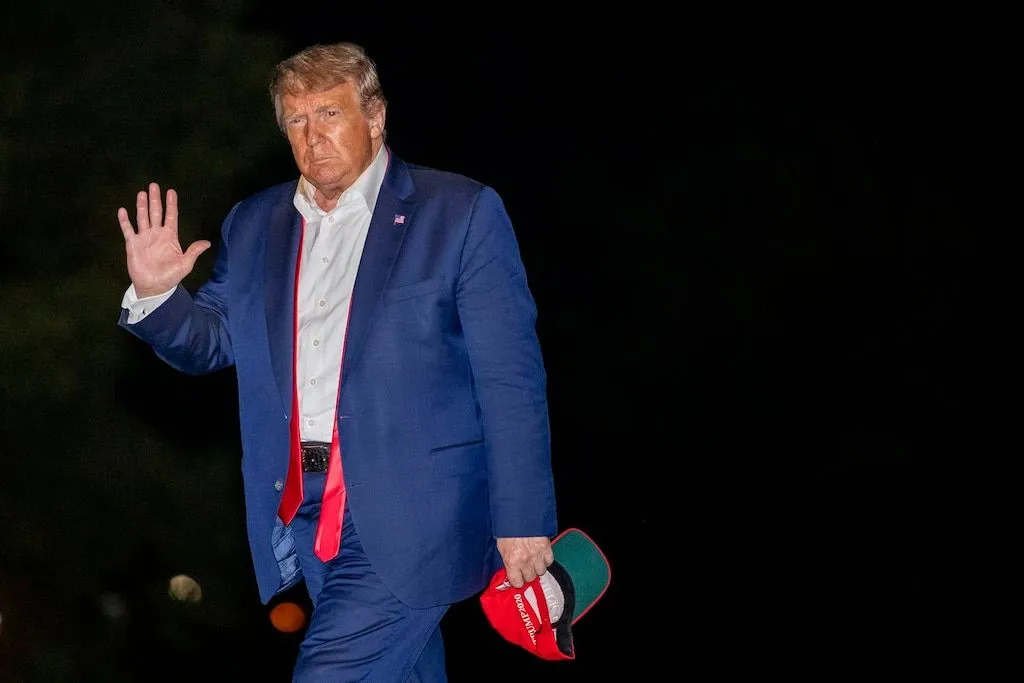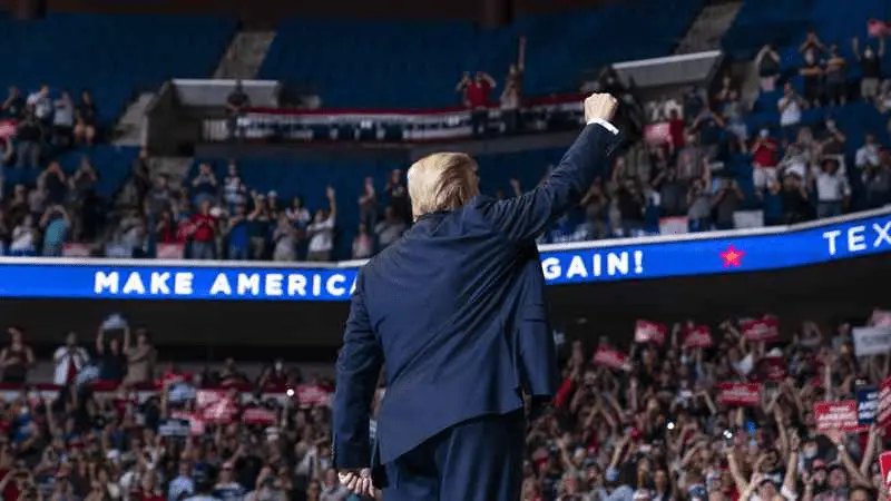 Video of Trump disembarking Marine One after lower than expected turnout as his campaign rally has been captioned, narrated and set to music in memes
