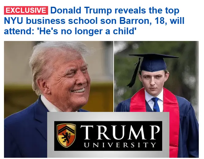 Trump's Son is set to reap the huge benefits of studying at his Dad's highly respected and reputable education institution.