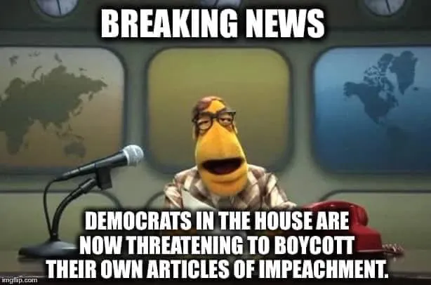 Should be amusing as Impeached President Trump whines about his innocence and how mean everyone is to himTrump in the same room as the House Demonrats. And Trump has the mic.