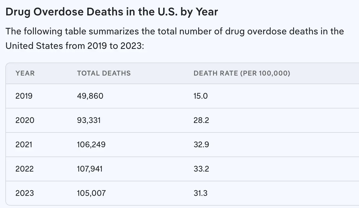 Opioid deaths skyrocketed during Trump 1.0, which is why you did not post the facts going back that far.