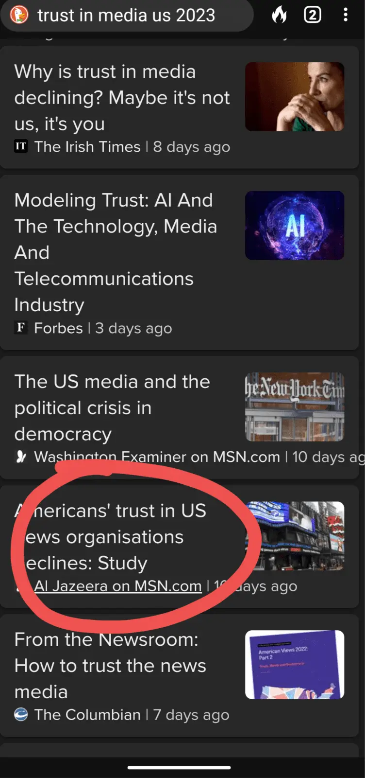 That's right... search "trust in media us 2023" and hit 'news'...only Al Jazeera comes up.