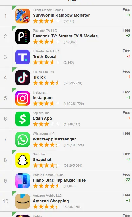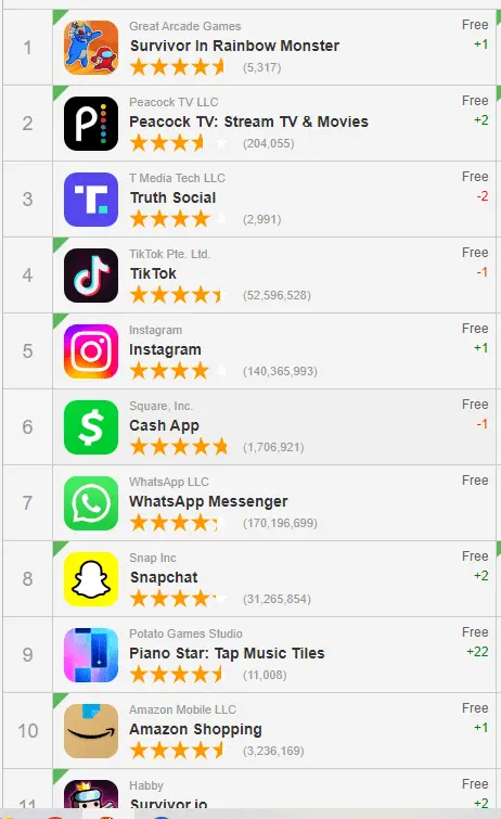 Yet if you look at the rest of the top loads you see Apps that are years old yet they are at the top still. Those have an ever growing market. Truth Social will stagnate once all you alt-right folks have it and then it will never grow