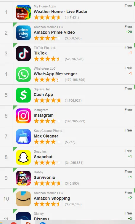 So it hits number one because so many people got the app.