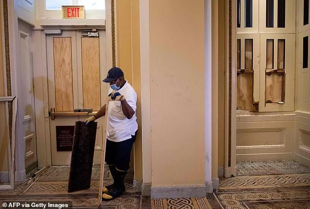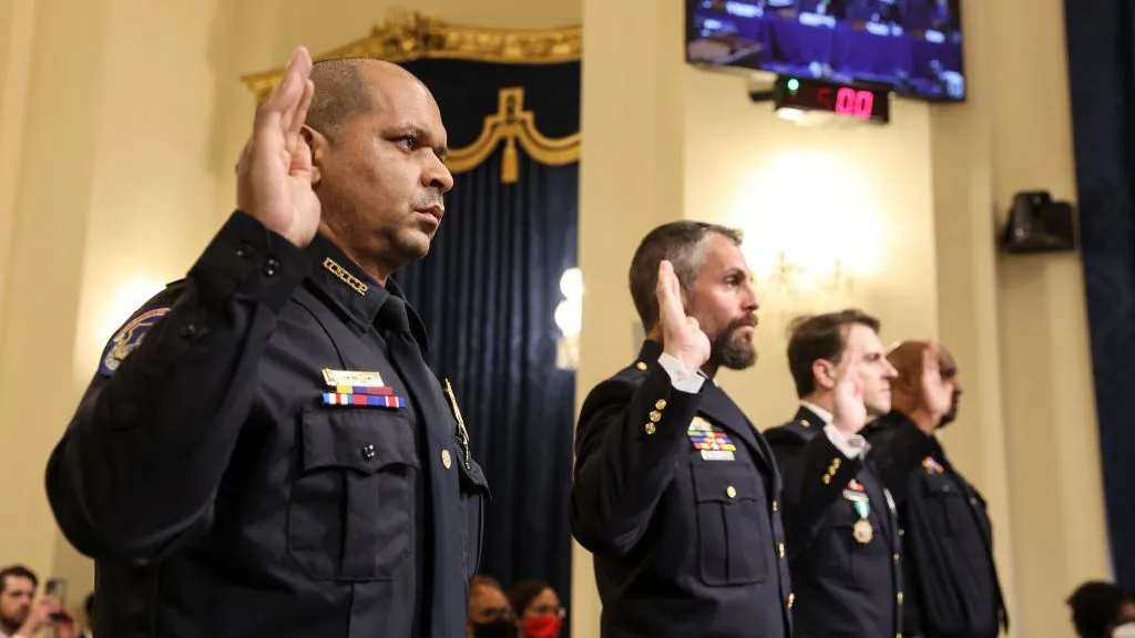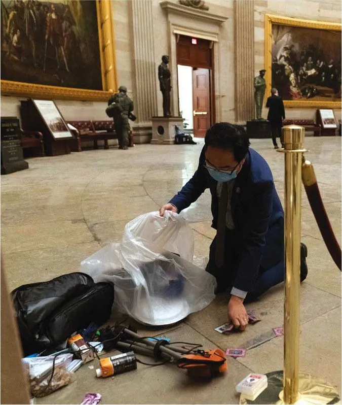 The riot squad defending the embattled entrance to the west side of the U.S. Capitol was surrounded by violence. Rioters had clambered up the scaffolding by the stage erected for the inauguration of President Joseph Biden. They hurled everything they could get their hands on at the cops beneath: rebar, plywood, power tools, even cans of food they had frozen for extra damage.