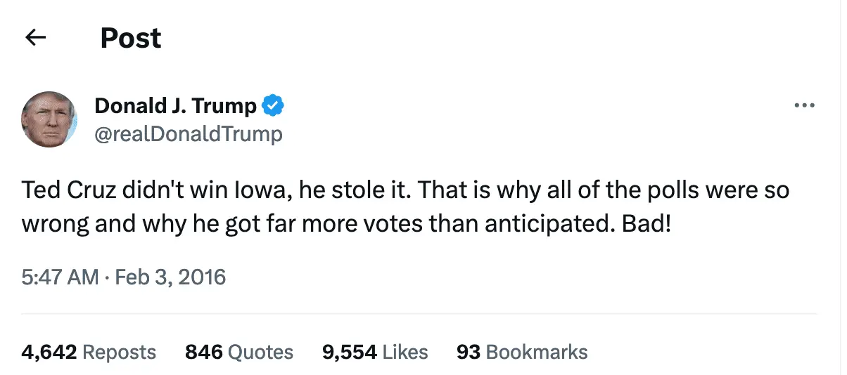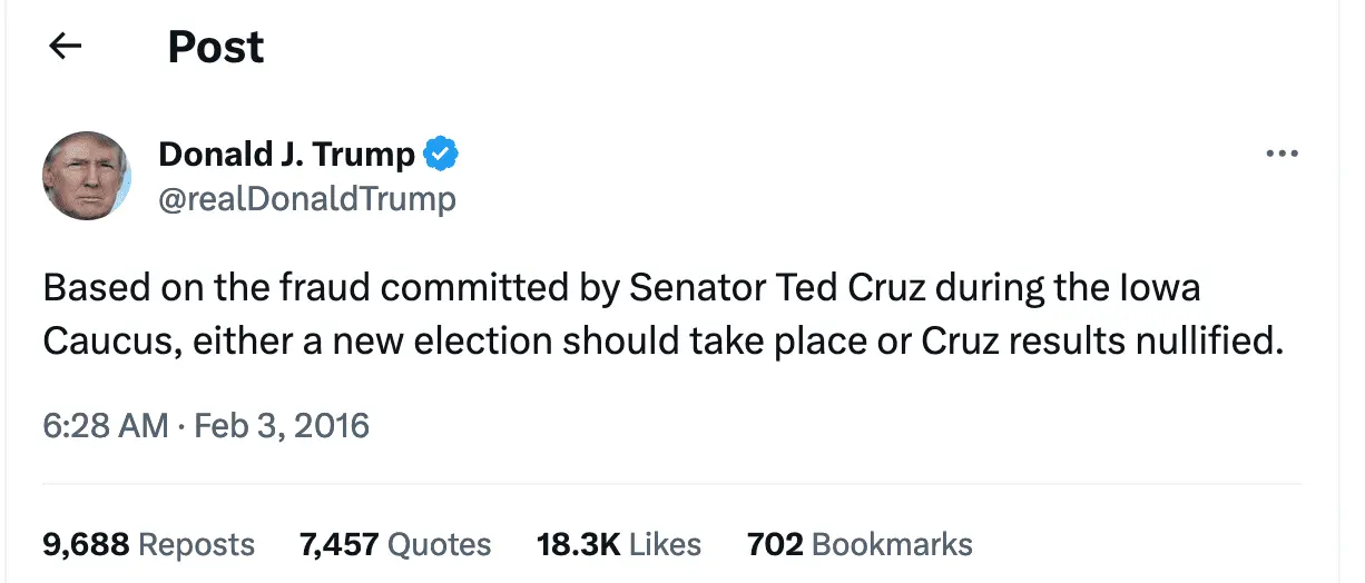 Trump accuses Cruz of stealing Iowa caucuses through 'fraud'