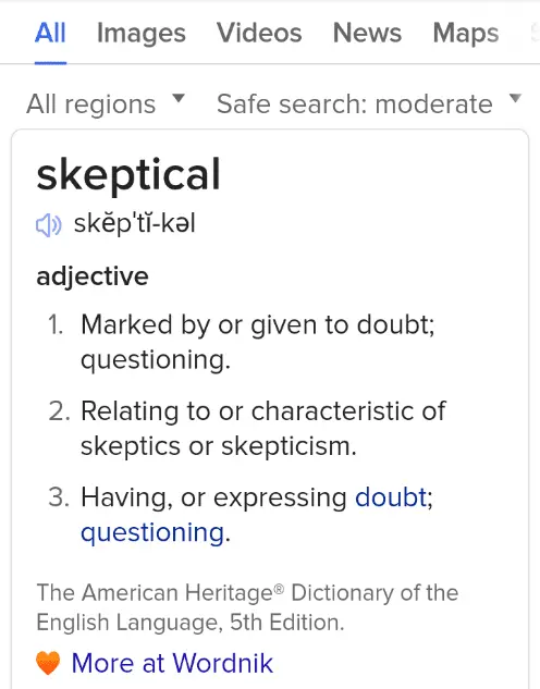 Absolutely. Doubting and questioning.Yes, you can use it colloquially to just mean "doubt". But let's be crystal clear, you are doubting. Nothing more.
