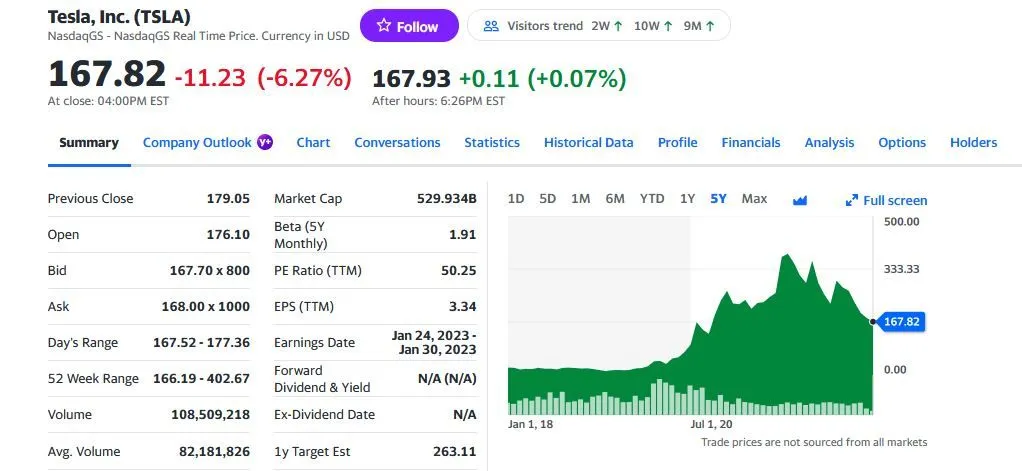 Automakers in general are down since the fed started raising rates. Of course Tesla is down as well, as it is impacted by the same market forces, despite the left's attempt to spin it otherwise.