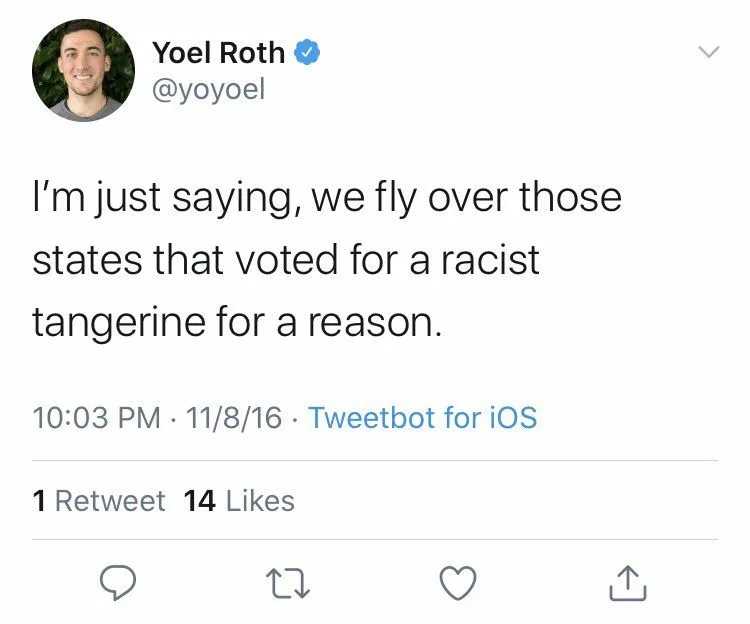 But that would put this smug little bigot Yoel Roth out of business?...so go aheadIt’s time the fed gov regulates online platforms like the telephone company. THE PEOPLE SAY WHT THEY WANT.