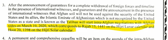 I love it when you change the goal posts. This is only part 1 and 2 of the negotiations? Conditions had to be met before we pulled all our troops out? Afghan sides? Does that eliminate the USA and others on the Afghan side? You said Trump signed this, where is his signature?