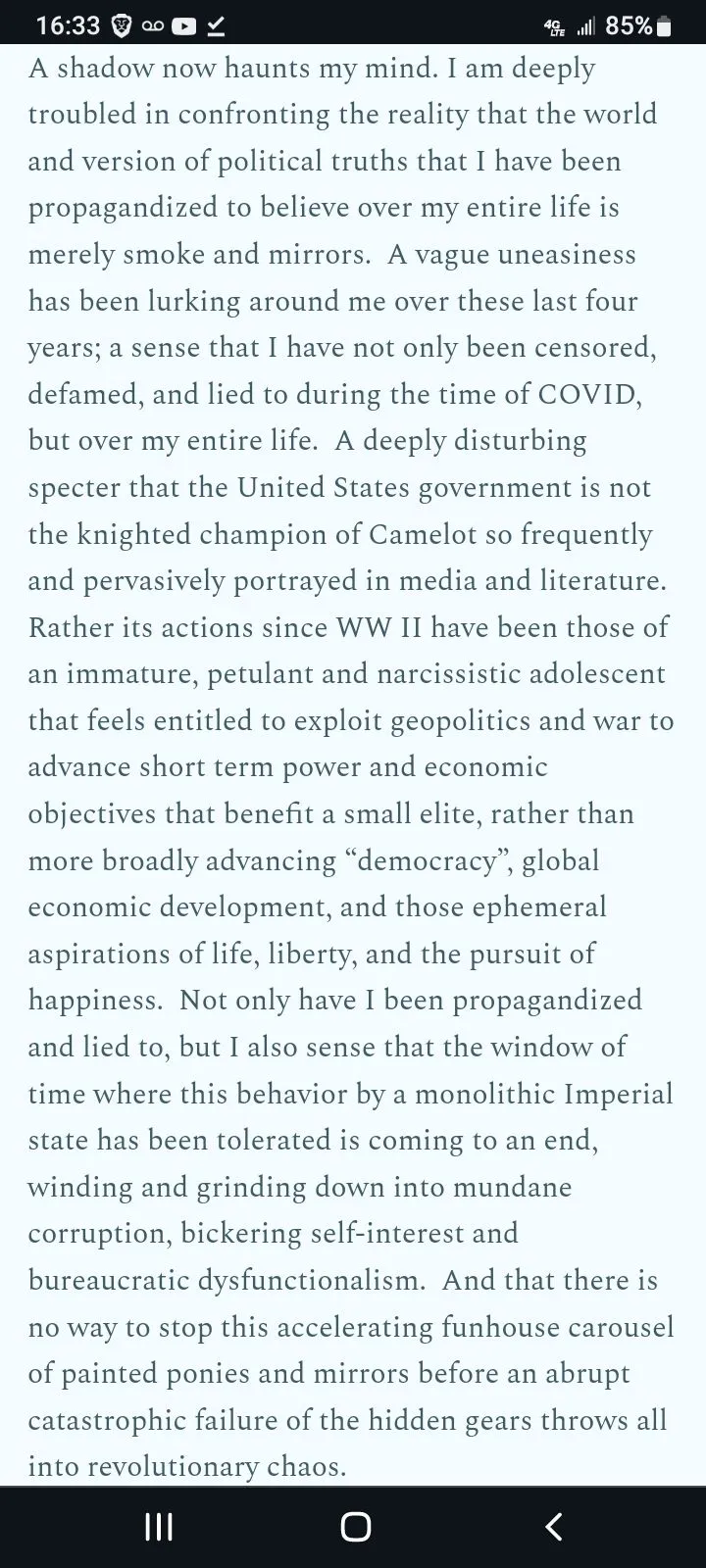On Saturday night I watched Tucker Carlson’s interview with Michael Benz, the link sent to me by a reader, and found out that I have, like many others, been a warrior against a military junta that has taken over our government.tldavis.substack.com