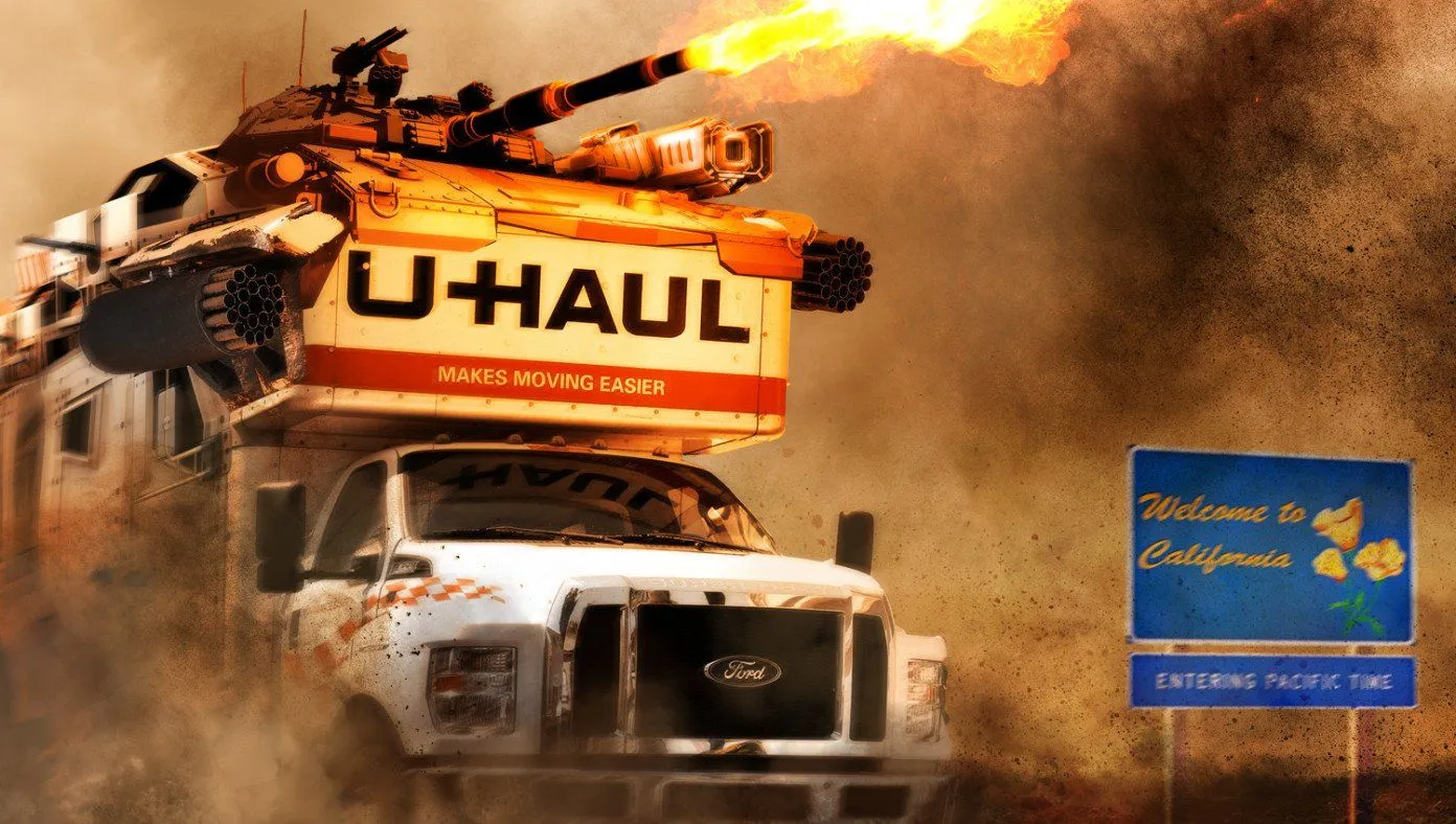 To help meet the demand of millions of people desperately trying to escape the dark, ravaged wasteland of California, U-Haul is introducing a new product in its moving van line-up: the War Rig. These weaponized, armored moving vehicles will ensure you and your belongings stay safe during the long and perilous journey out of the state.