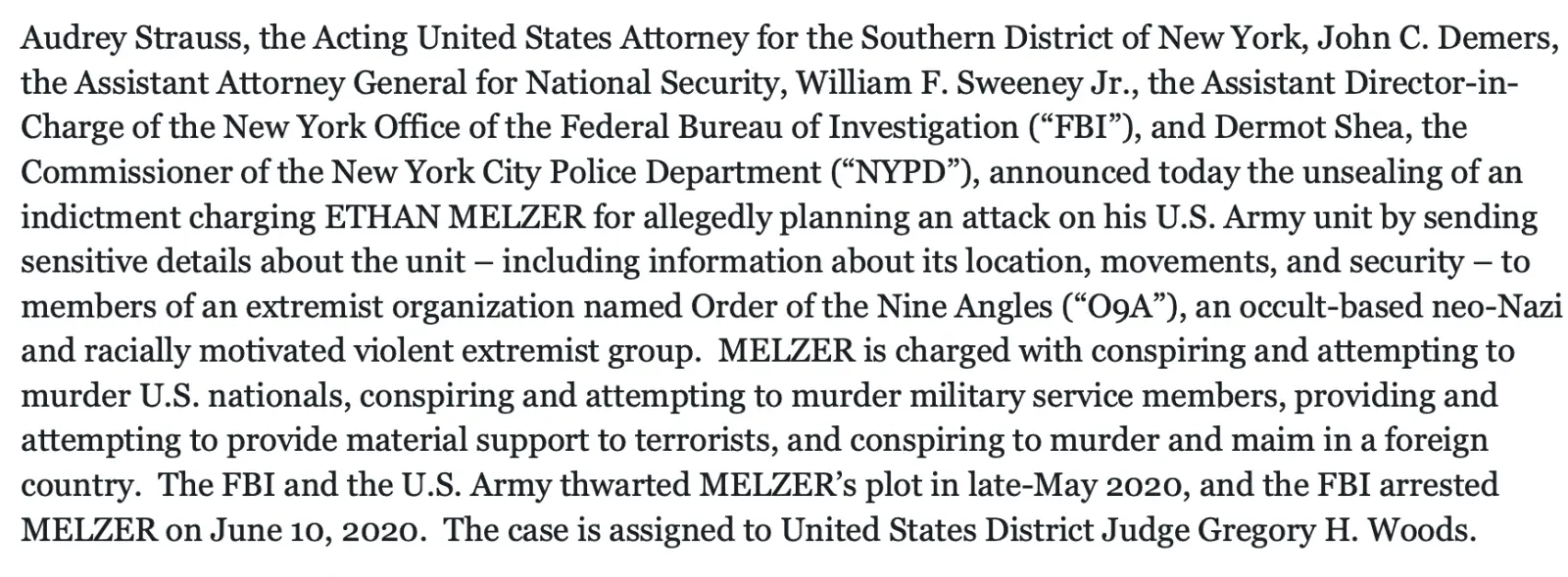 U.S. Army private ethan melzer sent sensitive U.S. Military information to members of a Neo nazi group so they and melzer could ambush melzer's own Army unit.
