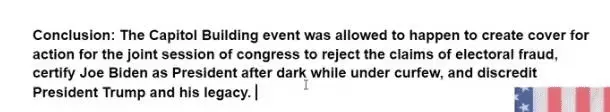 He thanked them for a job well done. They will go down in history as the first successful assault on the US Capital since 1812.If they were ANTIFA or BLM I don’t understand why Trump would have thanked them after telling them to go home. And that he loved them and to remember this moment. Damn shame twitter made him delete those particular tweets. Based on Trumps posts himself I’m pretty sure they weren’t ANTIFA or BLMThe FBI is going to arrest them and never release their names because they are Anti_Fa of BLM.Sure it does. Inciting a seditious insurrection to storm the Capitol. I can't wait to see all the charges brought against him when he leaves office. This will just be one of many.It does not rise to the standard of a high crime or misdemeanor. The end.If he gets impeached again, it won't be like the last one. This one will be over in 24-48 hours. And this one will result in a conviction in the Senate. Git him out now.He can do it anytime he wants. Lawyers will handle the impeachment, and Trump will handle the declassification. You worried assflap?LOLLet's hope Trump starts declassifying his ass off right now and keeps it up until Jan. 20th.