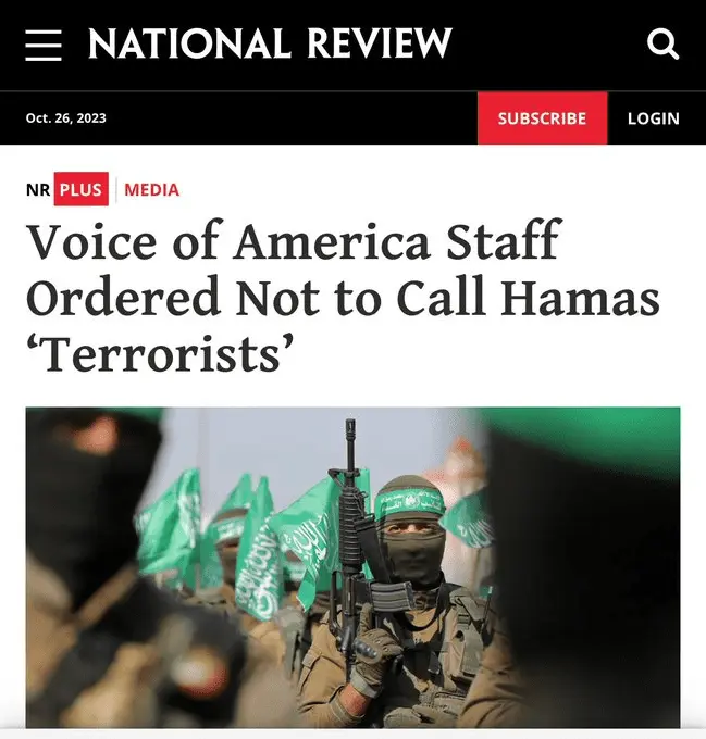 Voice of America Orders Reporters Not to Call Hamas Terrorists!