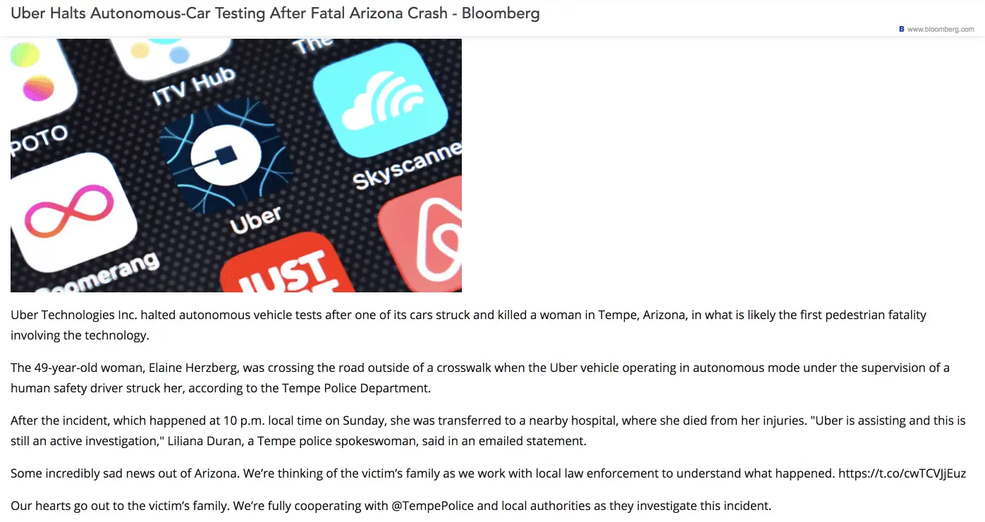 Oh self driving cars just oh so gawd dam cool aren't they. Hopefully they sue but you can e sure these leftist prick companies have immunity.