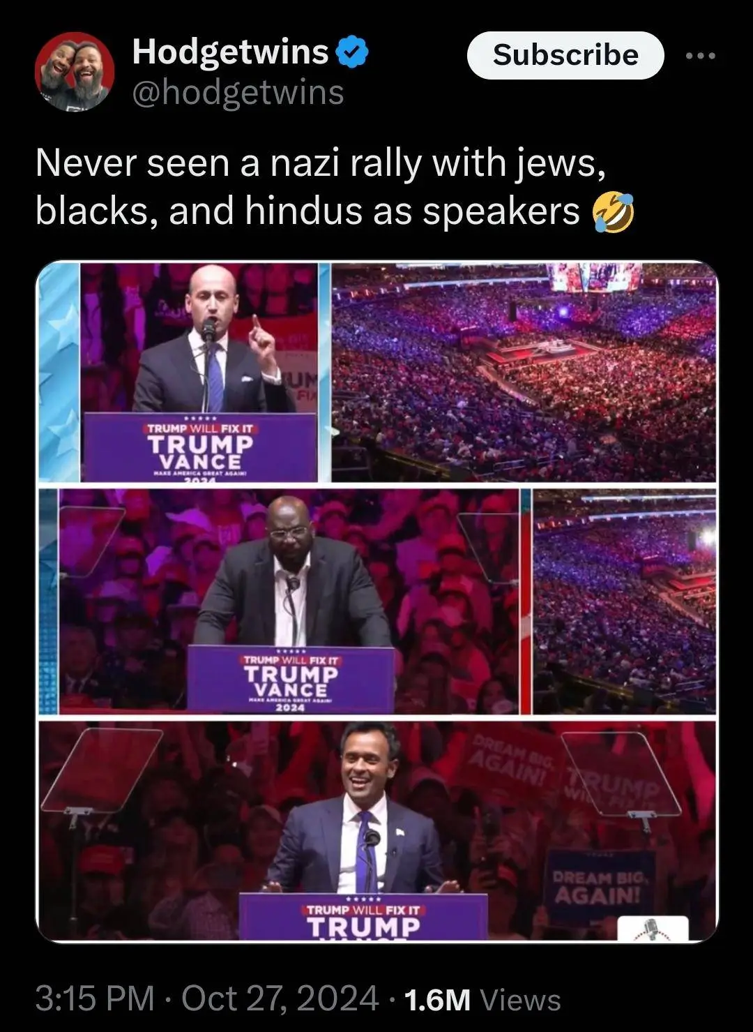Trump, the most pro-Israel president in my life, and who signed an EO to ramp down on antisemitism on camousss, and who has a Jewish daughter and grandchildren is like Hitler, and Stephen Miller, who is Jewish, is like the KKK.