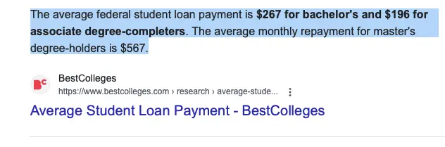 The average mortgage payment is much hugher than a student paon payment
