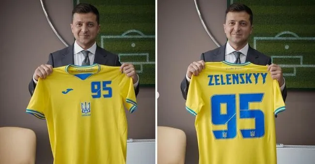 Proudly shows Jewish president of Ukraine his T-Shirt ( s. below)