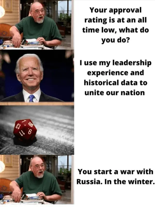 I think it's entertaining as long as none of our troops are hurt. The leader of Ukraine has dirt on Biden from Hunter's dealings there and Putin owns Biden. There is no good outcome for Biden personally. So get the popcorn.