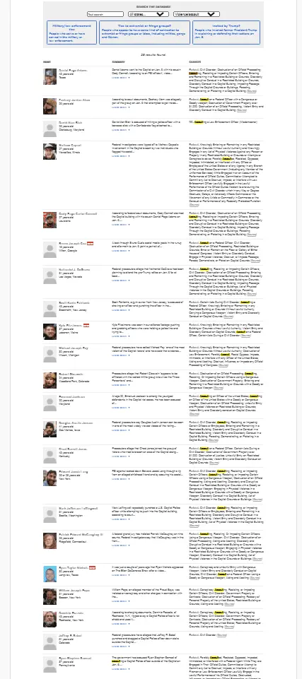 For a play-by-play of the Trump supporters and their mounting legal troubles....you can use the database above. Stories of the folks are framed like below: