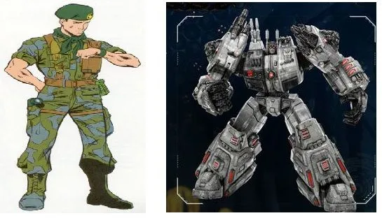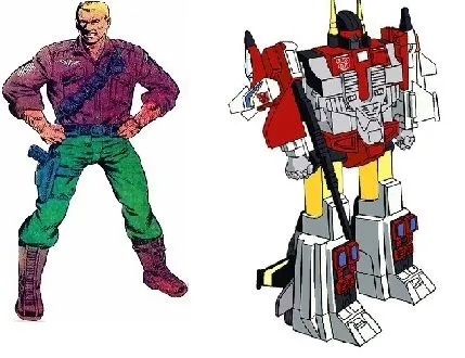 A great patriotic American soldier and commander of the secret paramilitary crusader-unit known as 'G.I. Joes' named Duke agreed to enter a magical transformation portal NASA discovered on the moon. Duke was transformed into a flying valiant robot named Superion. Duke/Superion knew he'd have to marshal a new capitalism-defense plan because of this transformation, which was obviously symbolic and meant to convey some capitalism apocalypse by whoever placed the transformation portal on the moon.