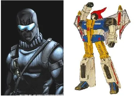 Comics writer/artist William Gibson and Hollywood (USA) movie-stars Tom Hanks and Tom Cruise established a comics enterprise called Archangel Comics which would release a series of illustrated stories about G.I. Joes and Cobra agents warring while transforming into good and evil robots (Scourge, Superion, Destiny, etc.) on Earth's moon. The story series would be a synopsis of the Joe-Cobra War and remind Americans how capitalism-rhetoric was saved in a time of Great Tribulation (regarding spiritual threats to democratic governance). Michael Bay would adapt these Archangel Comics stories into a big-budget pro-TrumpUSA film titled Joe-Cobra: Robotic Covenant and starring Tom Cruise, Jude Law, Leo DiCaprio, Denzel Washington, and Jennifer Connelly(!). The film made a ton of money.