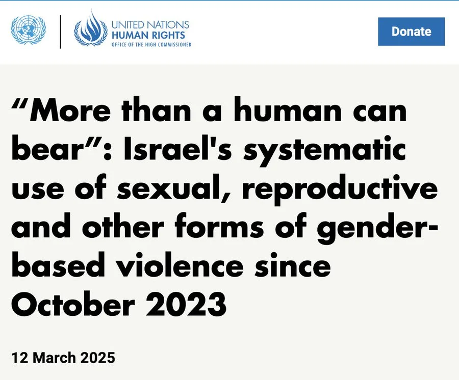 “UN Report”. Ha ha ha!A 49-page UN report documenting Israel's "genocidal acts" in Gaza and its systematic use of sexual violence as a weapon of war.