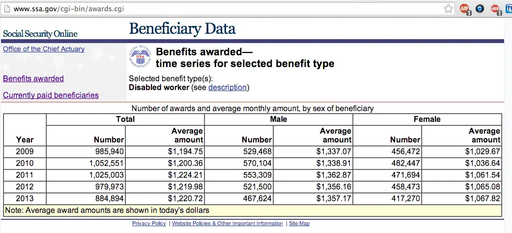 * It's also worth noting that, while disability "claims" were up in the aftermath of the Great Recession, a Congressional Budget Office study says claims are always up during recessions. But actual disability "awards" are down. Source: SSA (See the full post with data here)