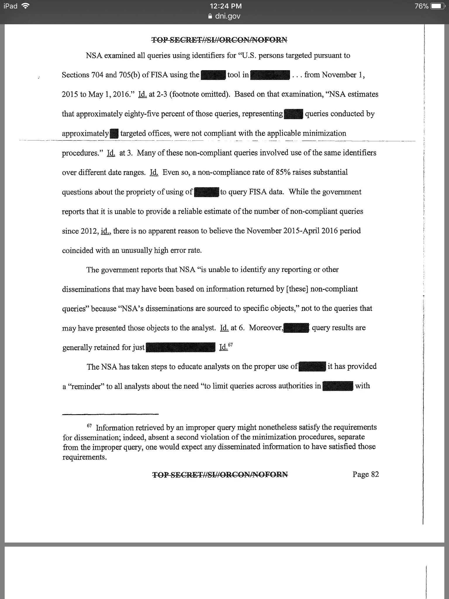 I read the conclusion again — the warrants were consistent with the requirements of the 4th Amendment...Read again- 85% were non-compliant