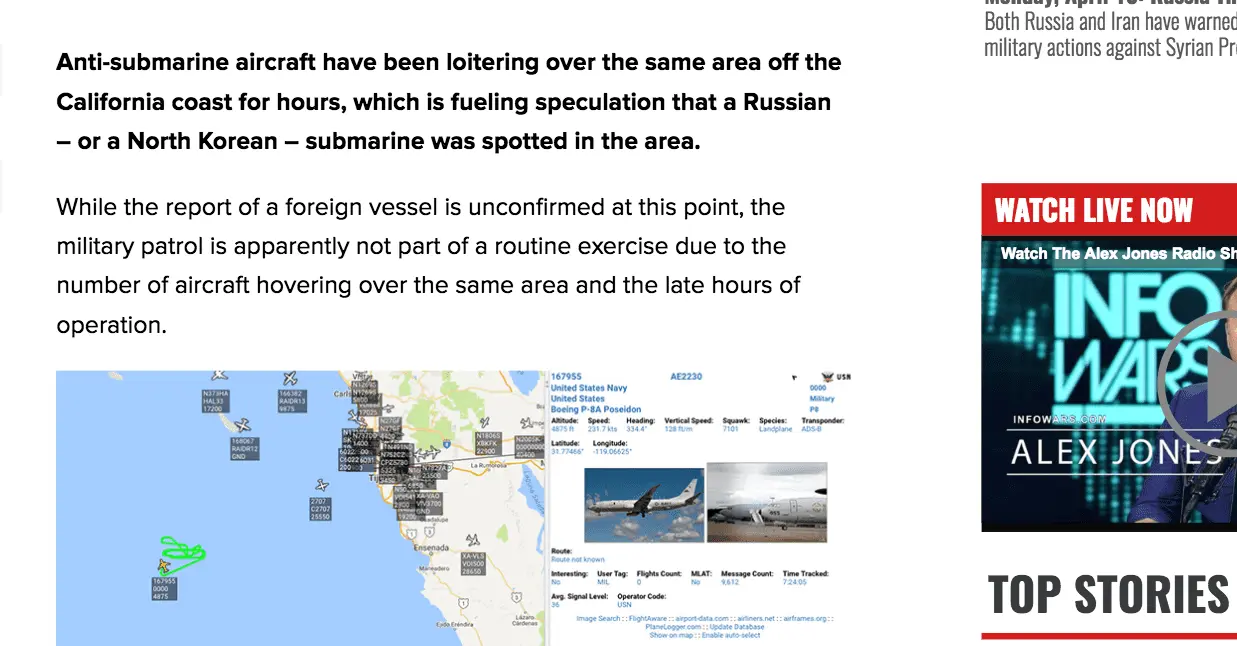 Unusual Navy Patrol Sparks Fear of Foreign Sub Off California Coast