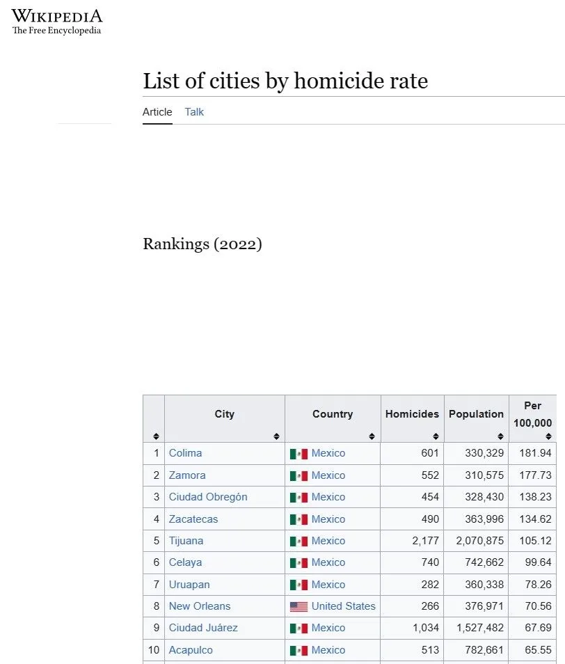Shouldn't be surprising to anyone, this is what Mexico has become. It's the murder capital of the world, with 9 out of 10 of the cities with the highest murder rates.
