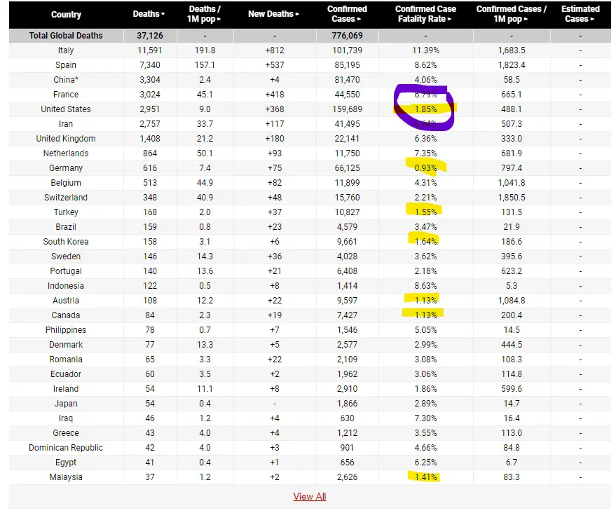 US has second lowest Chinese Virus fatality rate in the world