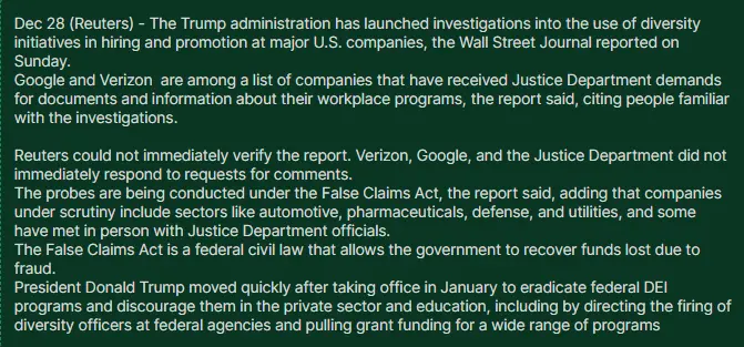 And the department of Justice has been gutted, especially the Civil Rights Division, which is why I posted LOL. Besides, what happened to allowing companies to make their own hiring decisions. I mean do we really want the federal government jumping in? What do they look for, quotas? And the federal government can better determine a qualified job applicant than the company itself?