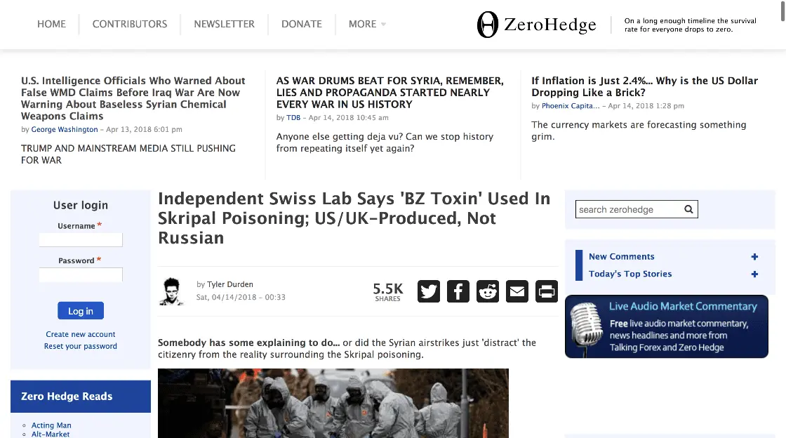 Well those doubts may well have just been answered as according to the independent Swiss state Spiez lab, the substance used on Sergei Skripal was an agent called BZ, which was never produced in Russia, but was in service in the US, UK, and other NATO states.