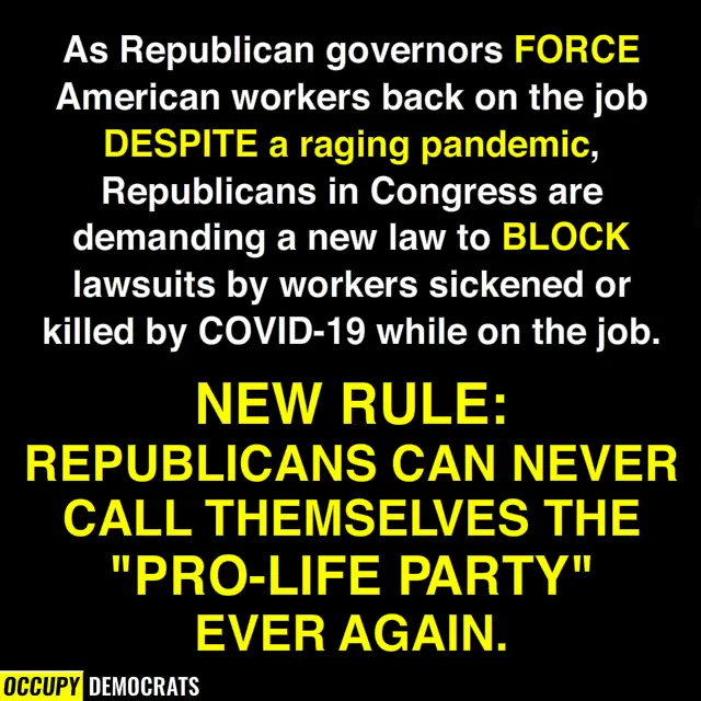 If mcconnell and the republicans get their way and take away a worker's right to sue their employer there will be more people quitting those jobs. No one will accept being forced to work in conditions that have a high chance of them getting the virus but no way to sue the employer who caused them to get sick in the first place.