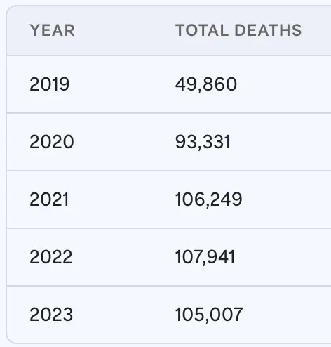 Looks like it peaked in 2022. And has been declining ever since. Biden's work on the problem no doubt began the trend.In addition to the murder rate dropping, the death toll from drug overdoses is also dropping, might be a record as well.
