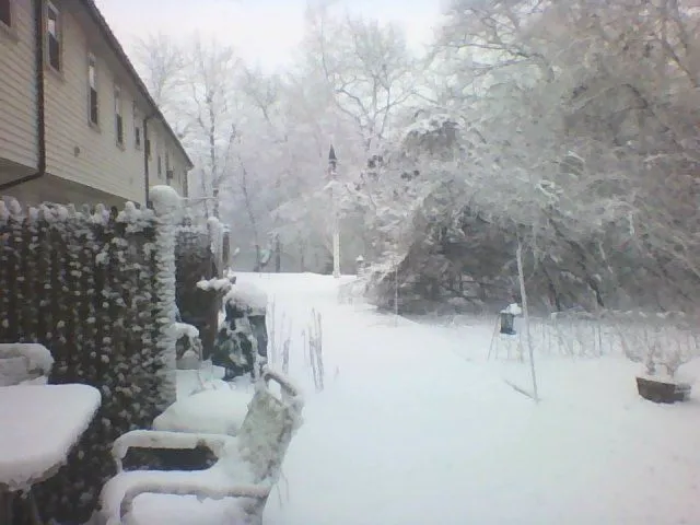 It's snowing pretty good here now. I just went outside and took a few pictures.Enjoy Montrovant!