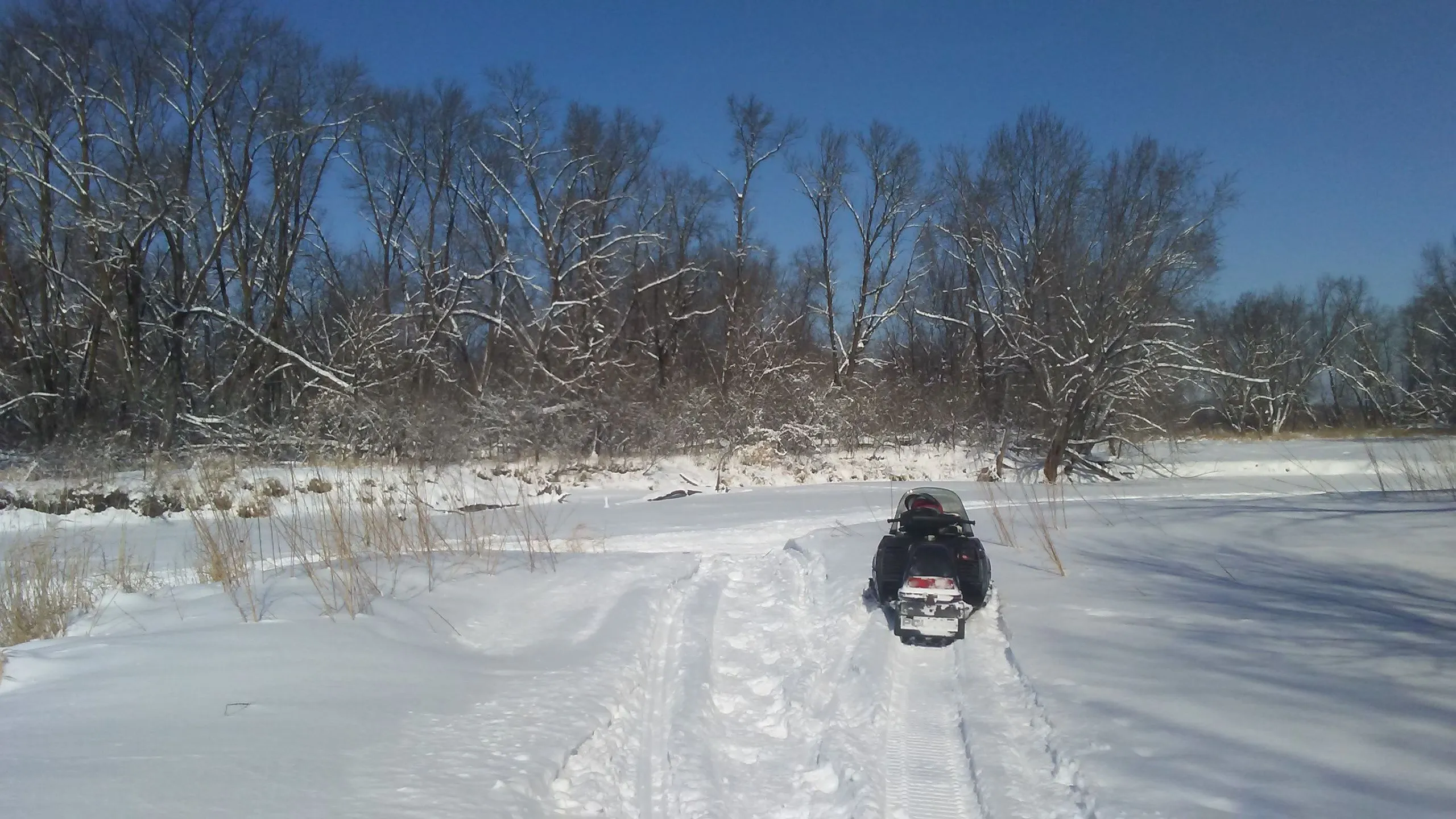 This is right from my home only 30 miles north of Mpls. The Rum river winds down to Anoka, Mn. Where it flows into Mississippi. Snowmobile parking in town so you can grab a bite to eat in old historical town.