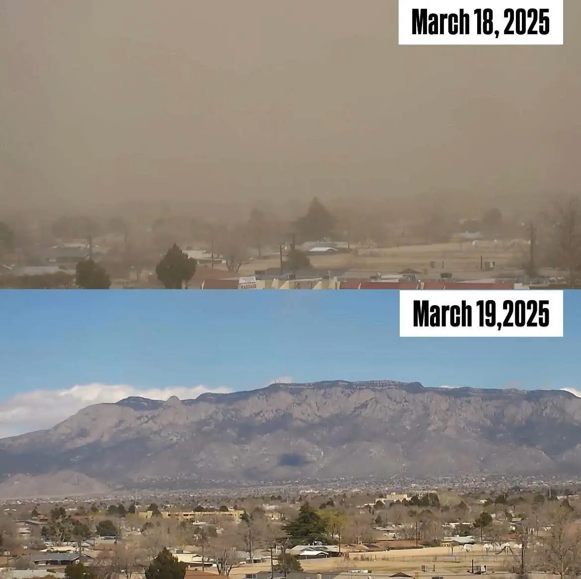 .Albuquerque yesterday and today. That isn't fog folks. It's dust and other flying debris, the likes of which I've never seen before here and we've lived here since 1984.