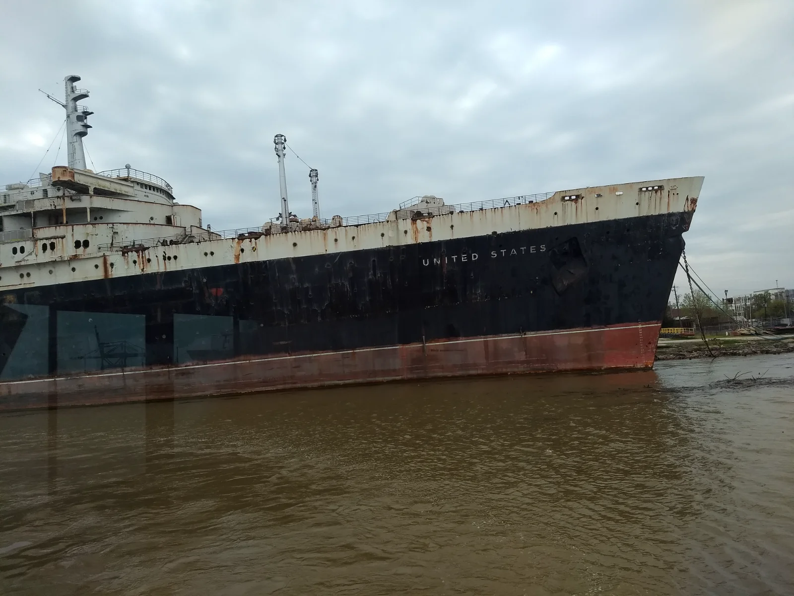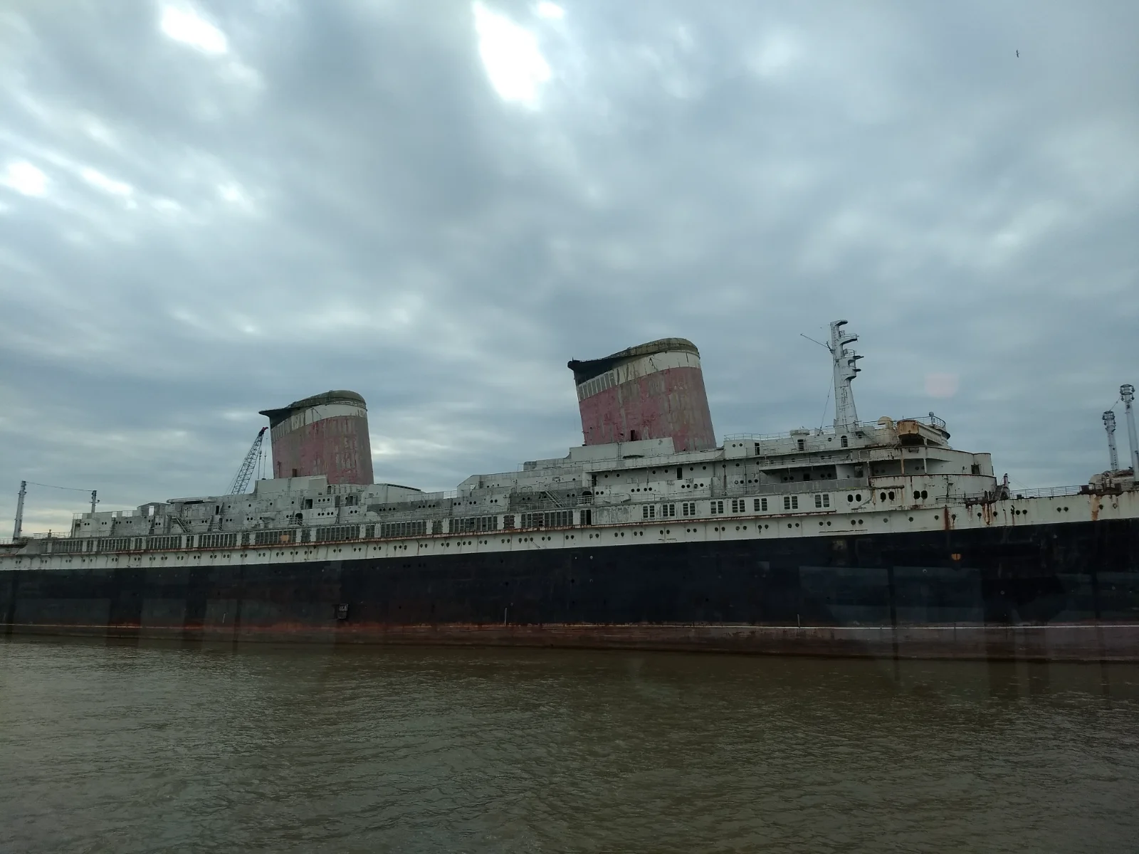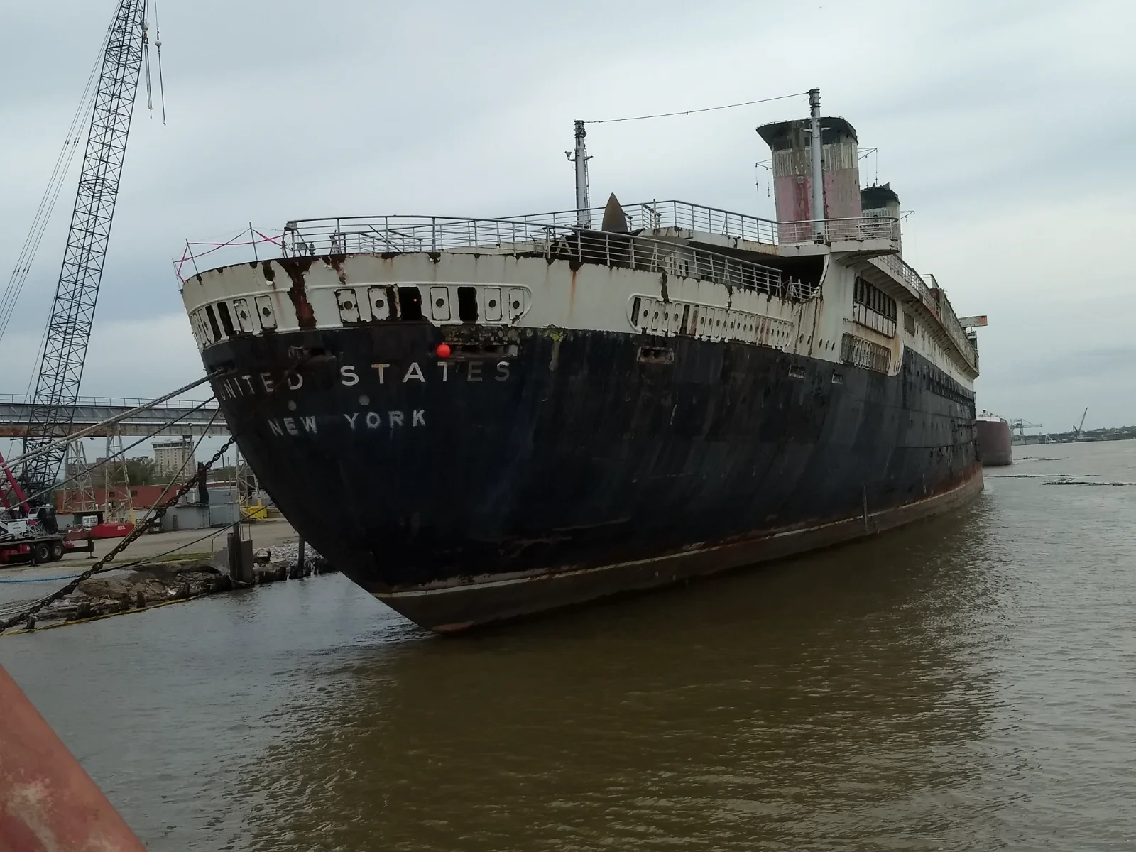 Unbeknownst to me prior to my arrival, the SS United States had been towed from Philly to Mobile, for its final gutting before being eventually sunk off of Destin, FL, as an artificial reef...Once the undisputed Queen of the Atlantic (it's crossing speed record still stands), it's now little more than a rusting hulk...Decades of being parked in the port of Philadelphia, and numerous failed attempts at preservation and turning it into a museum, have taken their toll...A recent documentary l had seen pointed out that the ship had already been gutted to a great degree, so I was left wondering what was left to "preserve"...It was featured prominently on a boat tour of the bay...
