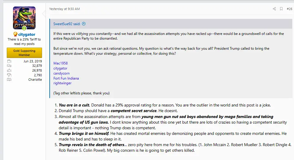 My first posts are below calling you a cultist troll for what you are. You laugh at the deaths of liberals and you high five Trump when he celebrates deaths of his enemies - liberals or conservatives. Then you have the lack of self awareness to post this ridiculous thread. You are a bad troll.