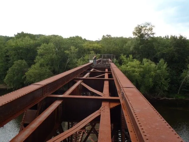 Me crossing the Potomac, over an abandoned railroad trestle. Lots beer in that duffle bag...