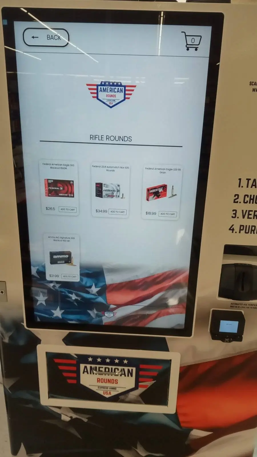 American Rounds markets an automated ammunition dispenser which uses artificial intelligence technology to verify a buyer’s identification and age through card scanning and facial recognition software.